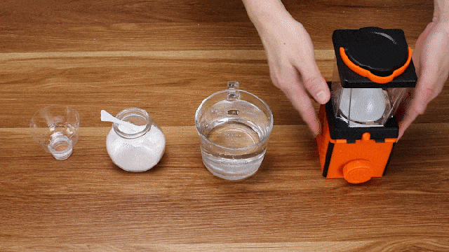 塩水とアルミニウム板を交換することで、繰り返し何度でも発電することができます。 |